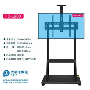 双幼通用32-120寸电视机挂架推架一体机落地升降支架会议平板移动推车 42-86寸FD1800无上托盘加厚款